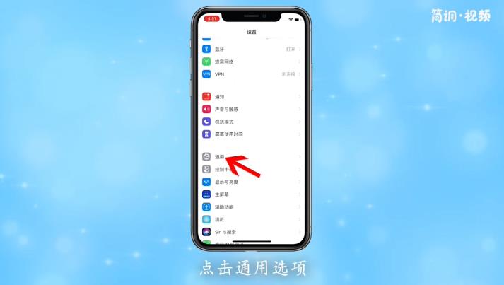 2.进入手机设置页面后,点击“通用”选项,进入通用设置页面;