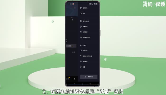 2.在弹出的列表中,点击“设置”选项,进入Tik Tok设置界面;