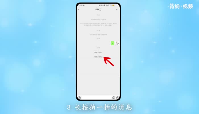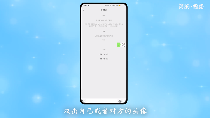 2.进入群聊页面后,双击你或对方的头像。这时候消息页会显示你拍了谁;