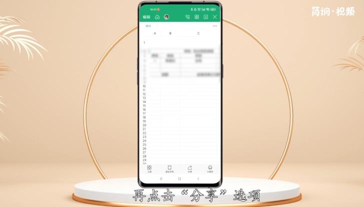 3.点击进入表格界面,然后点击“分享”选项进入分享界面;
