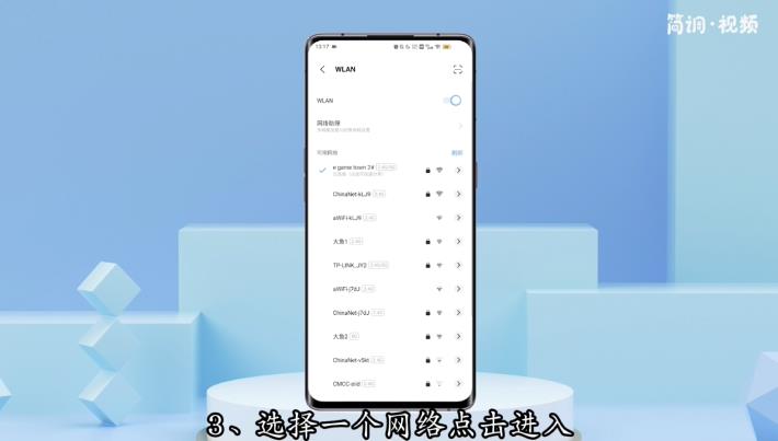 3.选择一个网络,点击进入,输入网络密码,点击右上角链接连接成功。