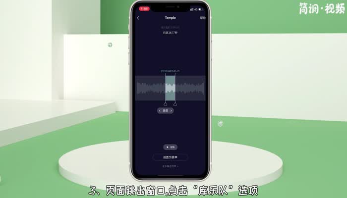 如果苹果想设置自己喜欢的铃声,可以通过音乐软件导出自带库乐队的音乐,然后进行设置。具体操作如下: