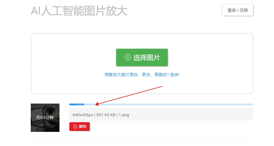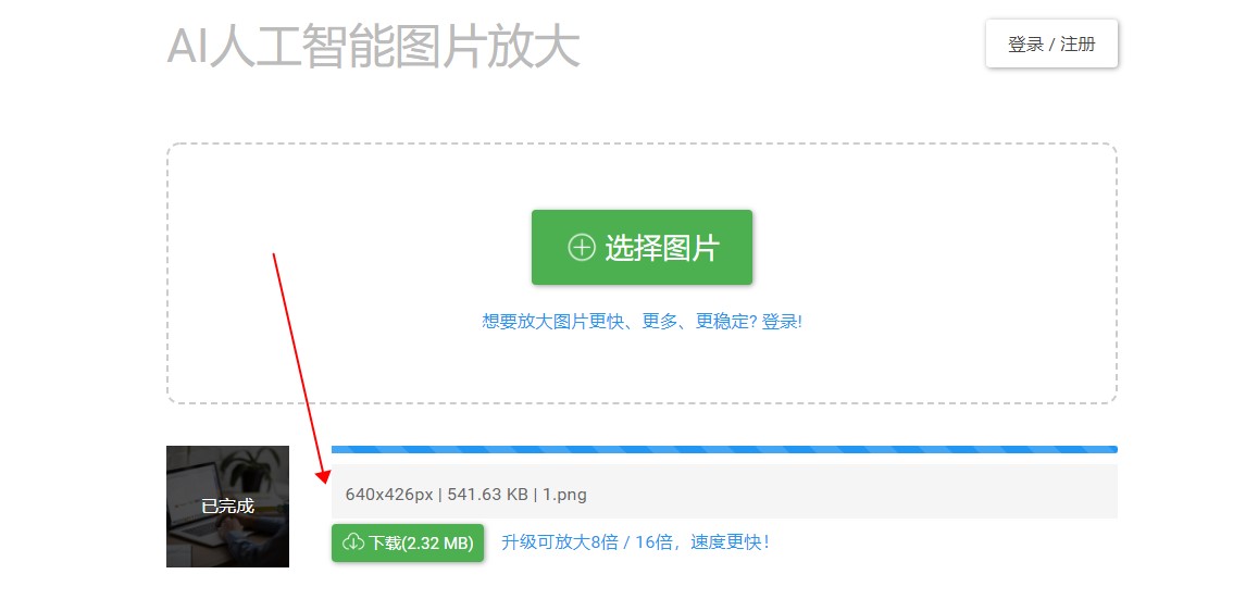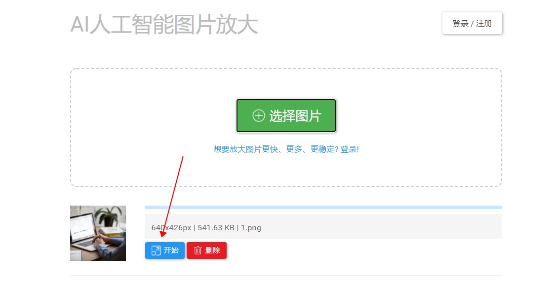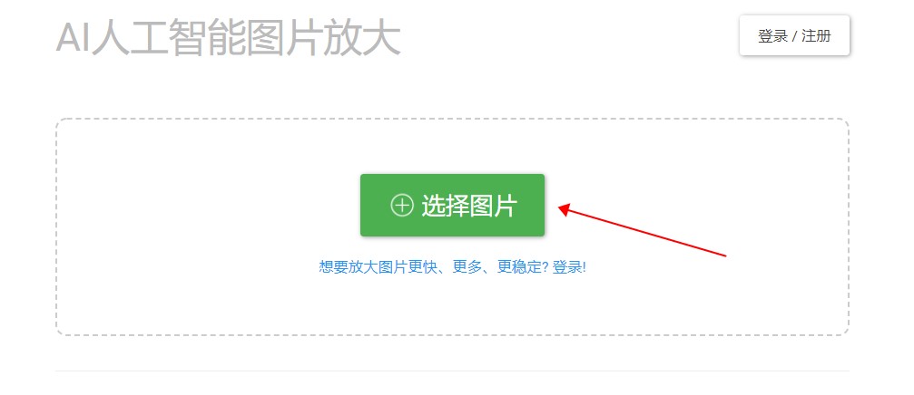 进入Bigjpg在线图片放大网站,点击“选择图片”按钮。