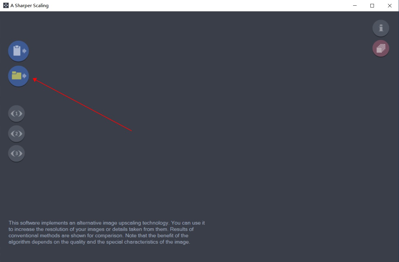 运行格式图片无损放大器,点击软件中间区域,添加需要放大的图片。