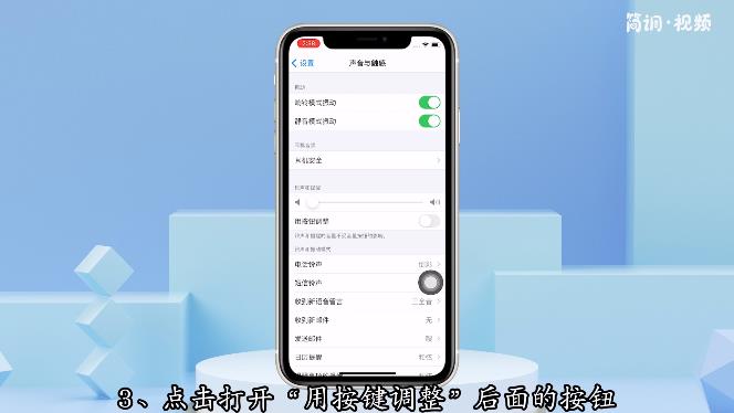 3.点击打开“用键调节”后面的按钮,这样您可以通过按住音量减小键来降低通知铃声的音量。