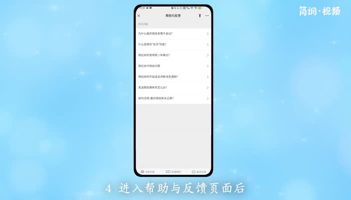 4.进入帮助和反馈页面后,点击右上角的“扳手”图标,进入微信维修工具页面;