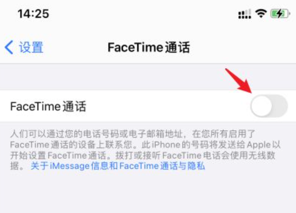 3.进入FaceTime通话界面后,打开“FaceTime通话”的开关按钮。