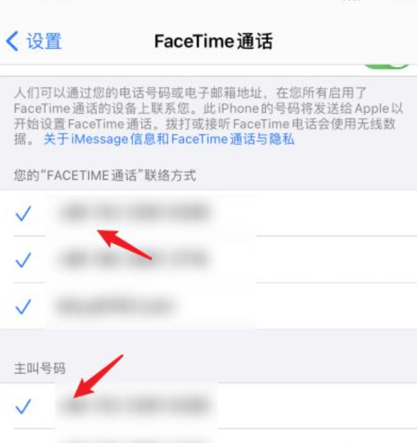 4.打开开关后,查看FaceTime通话的联系方式和主叫号码。