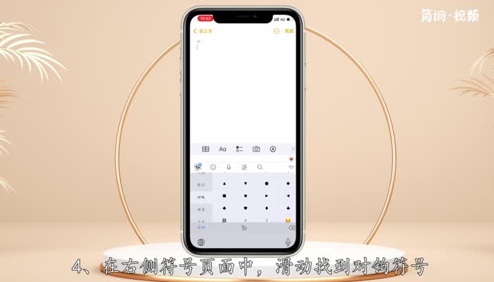 4.在右侧符号页面上,滑动找到复选符号,然后单击将其插入。