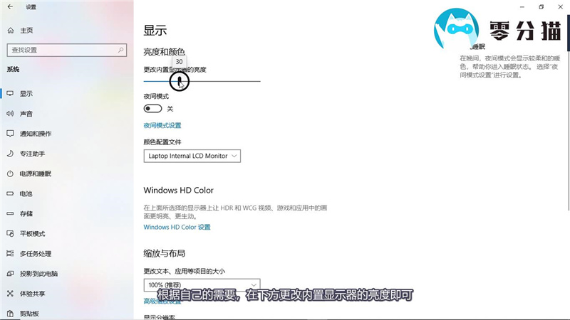 以Windows 10系统为例,电脑屏幕的亮度可以在亮度和色彩上进行调节,分为以下三步: