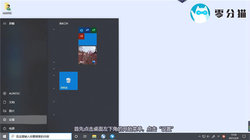 首先,点击桌面左下角的开始菜单,点击“设置”选项。