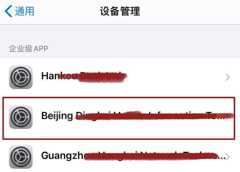 总结:1。打开一些软件,会提示“不可信企业开发者”。2.首先找到苹果手机的“设置”按钮,点击进入。3.在设置菜单中找到“通用”选项。4.在常规页面找到“设备管理选项”,点击进入。5.在设备管理中找到刚才提示的名称,点击进入。6.在打开的页面中点击“信任”,在弹出的对话框中再次点击“信任”按钮。信任授权完成后,再次打开APP时不会提示“不可信企业开发者”。