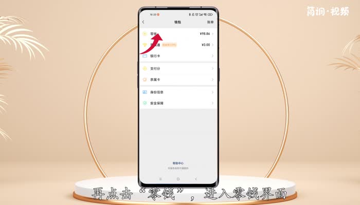 2.在支付界面,点击“钱包”,然后点击“零钱”,进入零钱界面;