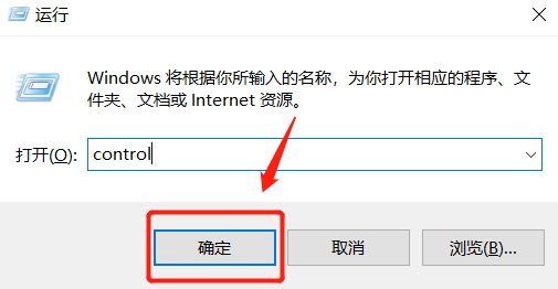 2.然后在“打开”后的操作框中输入命令“控制”,点击界面中的“确定”按钮。