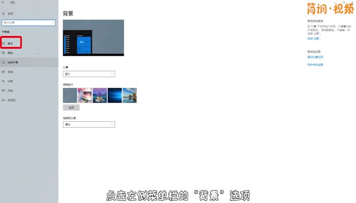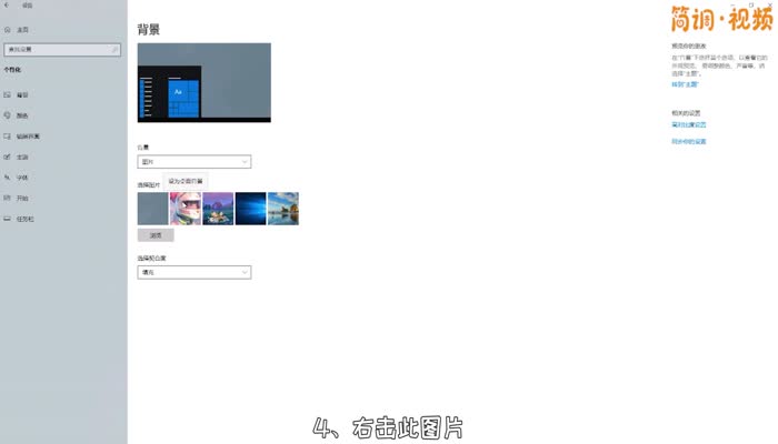 设置桌面背景图片,可以进入个性化中的“背景”界面进行设置。具体操作步骤如下:
