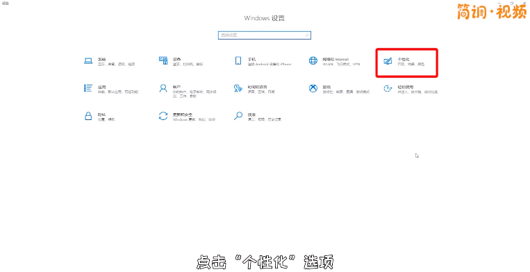 2.在设置界面,点击“个性化”选项,进入个性化界面;