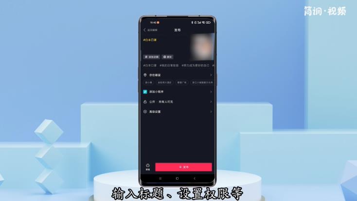 5.在发布界面,输入标题,设置权限等。设置完成后,点击“发布”即可成功发布Tik Tok作品。