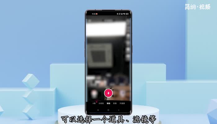 2.在制作界面中,您可以选择道具、滤镜等。设置完成后,点击红色闪电图标进行拍摄;