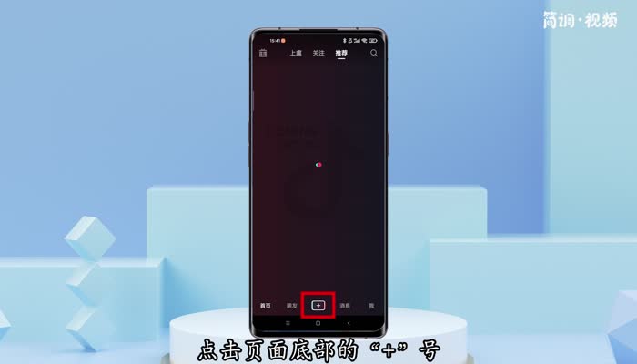 1.打开Tik Tok,点击页面下方的“”进入视频制作界面;