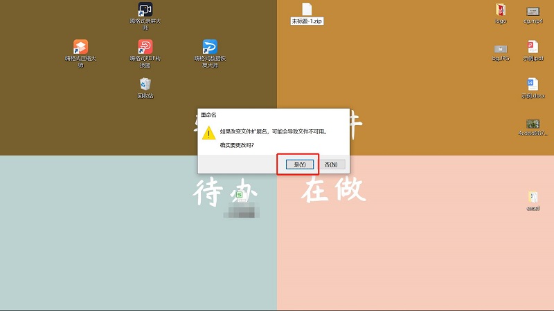 2.文件后缀apk更改为zip后,单击“是”选项。