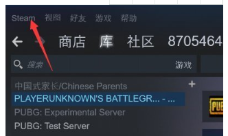 4.然后进入游戏厅后,找到并点击界面左上角的‘Steam’图标。