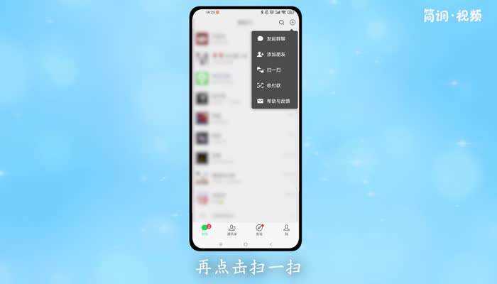 1.打开微信,点击页面右上角的“”标志,然后点击“扫一扫”;