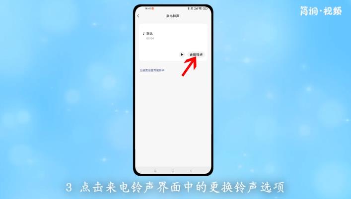 3.在来电铃声界面点击“更改铃声”选项,然后选择你喜欢的铃声,点击铃声旁边的“使用”。