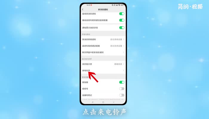 2.在设置界面中,点击“新消息通知”选项,在提示音和铃声一栏中点击“来电铃声”;