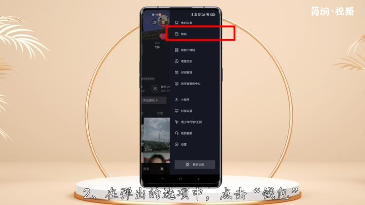 2.在弹出的选项中,点击“钱包”进入钱包界面;