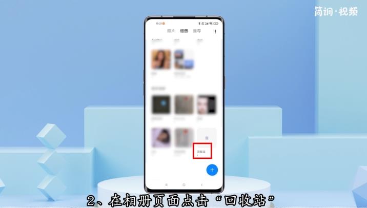 2.在相册页面点击“回收站”,进入后点击要还原的照片;