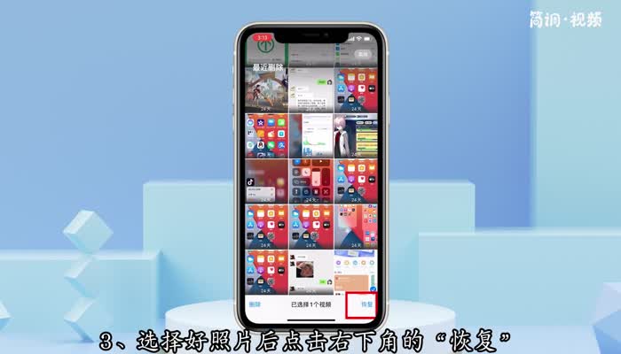 3.选中照片后,点击右下角的“恢复”,被删除的照片就会回来。