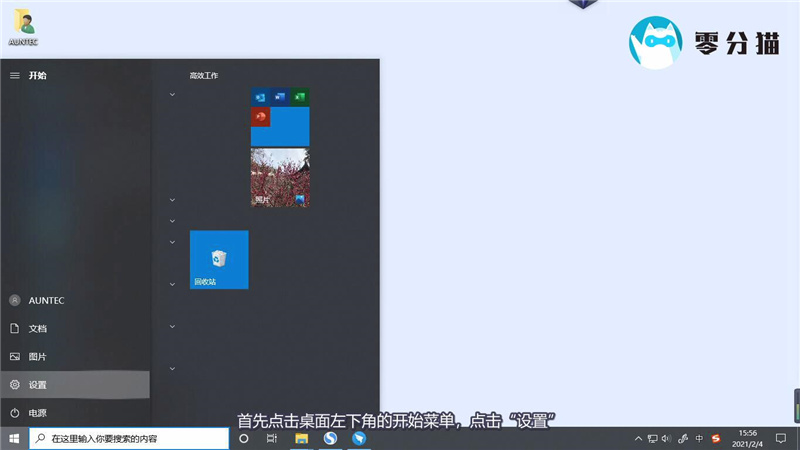 1.首先点击桌面左下角的开始菜单,点击“设置”。