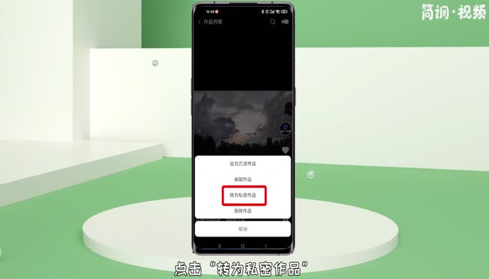 4.在弹出的列表中,点击“转私人作品”使作品私人化;