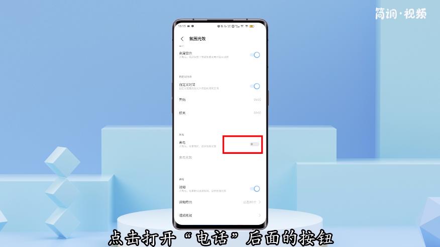 4.进入环境光效果页面后,点击“电话”后面的按钮打开;