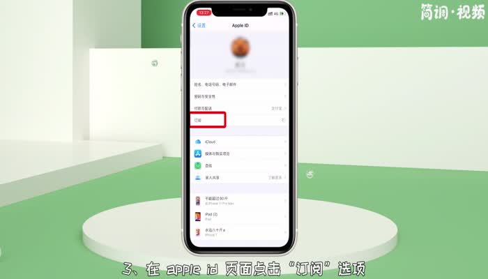 3.在Apple ID页面点击“订阅”选项,进入订阅页面;