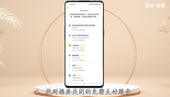 4.找到想要关闭的免密支付服务,点击进入页面;