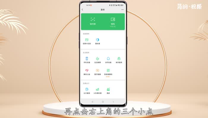 2.在我的界面,点击“支付”选项进入支付界面,然后点击右上角的三个点;