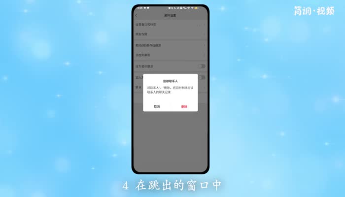 4.在弹出的窗口中再次点击“删除”选项,就可以将好友从列表中删除了。