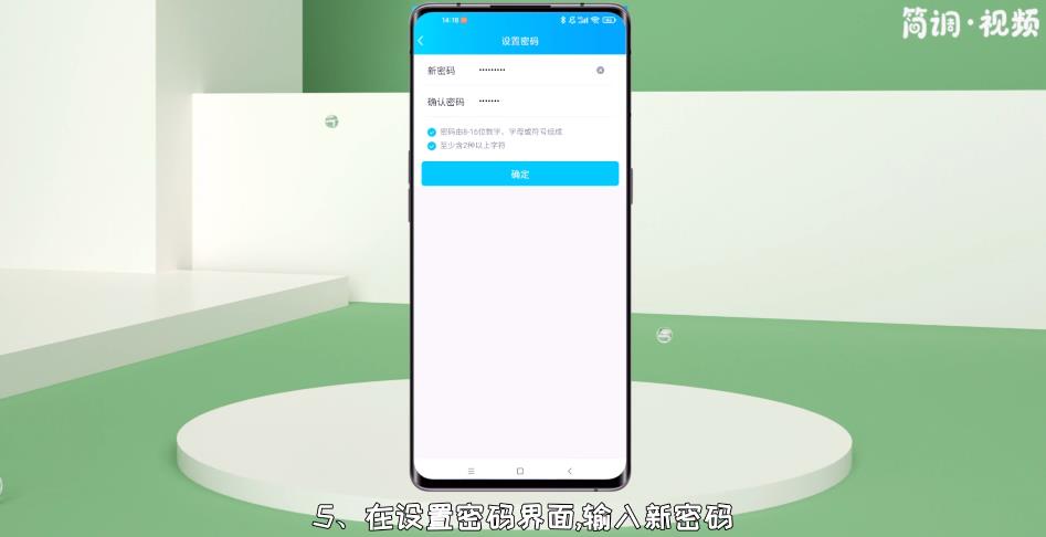 5.在密码设置界面,输入新密码,然后点击确定重置密码。