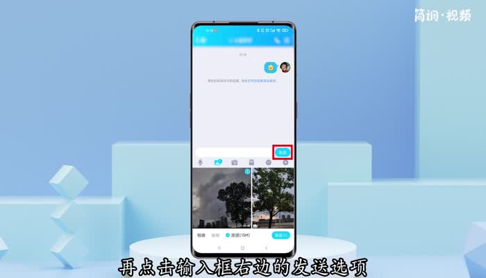 2.在聊天界面中,点击底部第二个相册图标,在弹出的相册列表中勾选想要发送的视频;