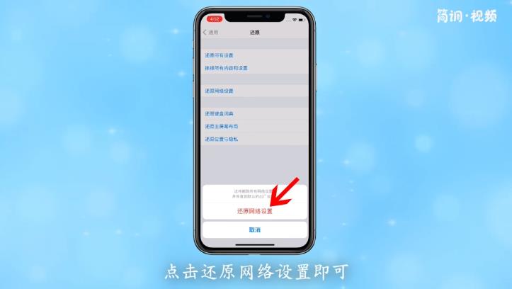 苹果手机4G网卡,点击通用设置页面的“恢复网络设置”选项即可解决。具体操作步骤如下: