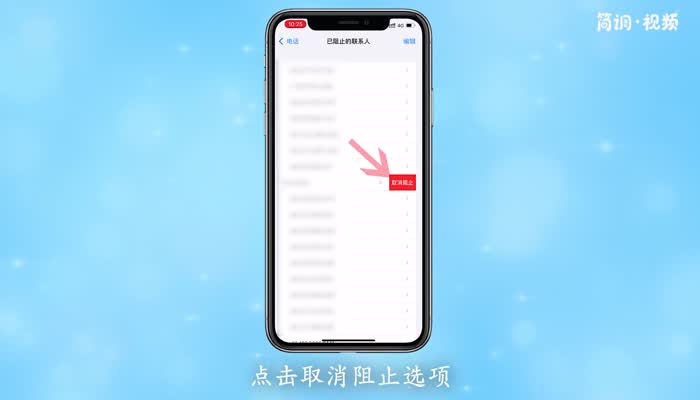 3.在手机设置页面,点击“阻止联系人”选项,在跳转页面查看所有被阻止的号码;