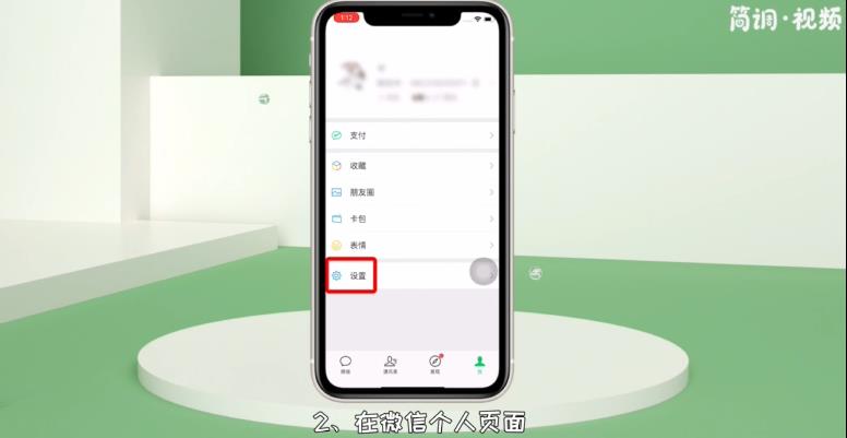 2.在微信个人页面,点击“设置”选项,进入微信设置页面;