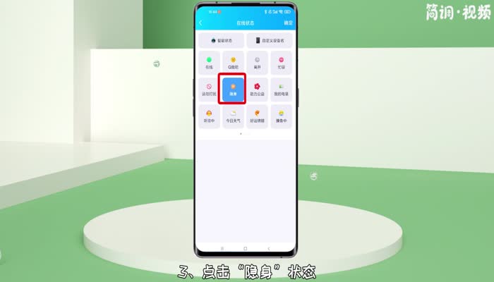 3.点击“隐身”状态,然后点击右上角的“确定”选项,将在线状态设置为隐身。