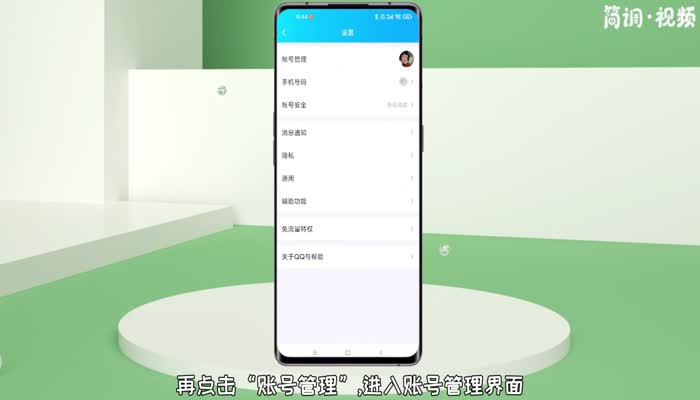 1.打开qq,向右滑动屏幕,点击“设置”选项,然后点击“账户管理”,进入账户管理界面;