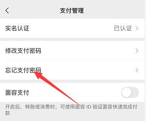 在支付管理页面点击“忘记支付密码”。