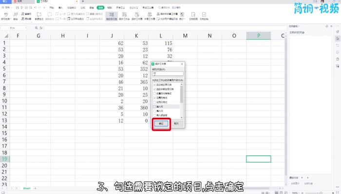 3.勾选要锁定的项目,点击确定,再次输入密码,点击确定锁定工作表;