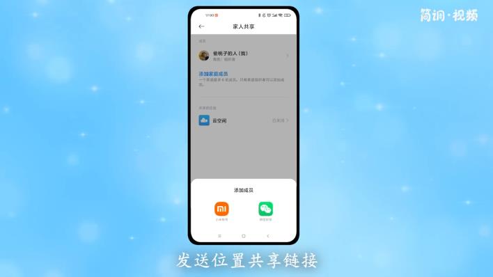 5.点击“家庭成员”,然后点击“添加家庭成员”,选择一种邀请方式,发送位置分享链接。手机丢失,亲友进入链接,可以查询位置。