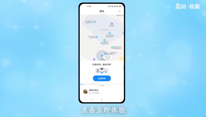 4.根据提示,输入账号密码,打开搜索功能。在位置共享下,点击“立即体验”;