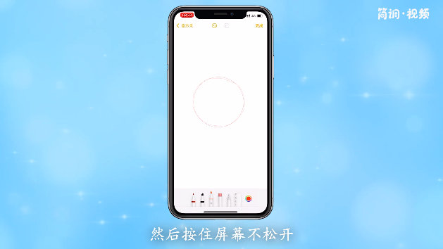4.在备忘录上画一个圆,然后按住屏幕不放,直到圆被自动纠正。释放它以完成。